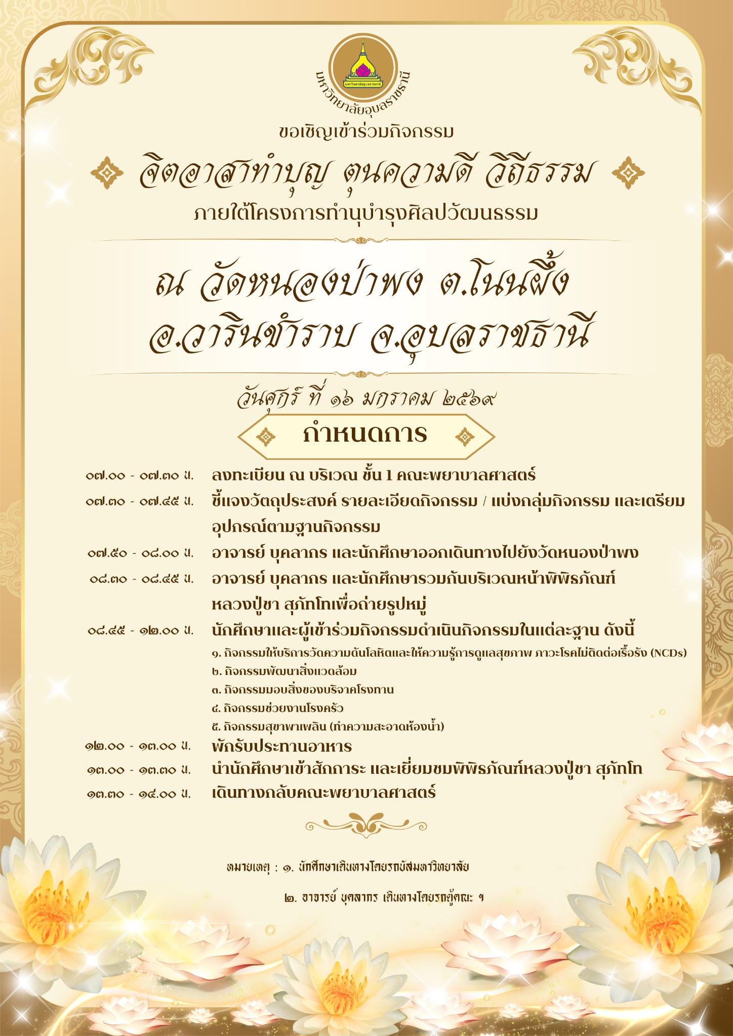 สมาคมพยาบาลแห่งประเทศไทย ร่วมกับ คณะพยาบาลศาสตร์ มหาวิทยาลัยอุบลราชธานี จัดโครงการเทิดพระเกียรติ 125...