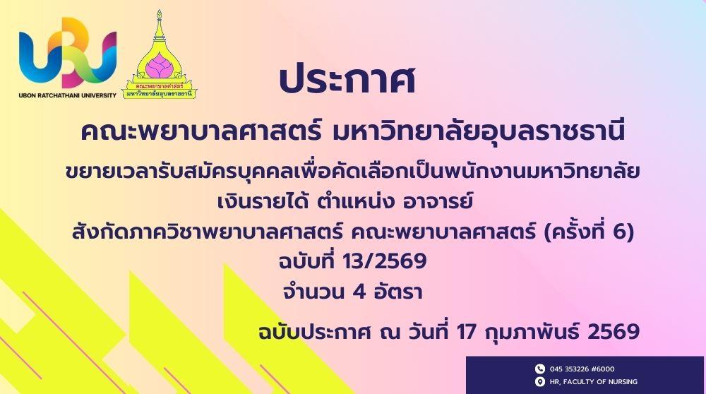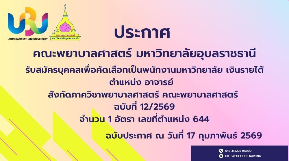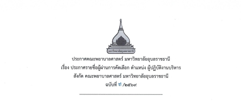 ประกาศคณะพยาบาลศาสตร์ มหาวิทยาลัยอุบลราชธานี เรื่อง รับสมัครจ้างเหมาบริการบุคคลธรรมดา ตำแหน่งผู้ปฏิบัติงานบริหาร จำนวน 1 อัตรา