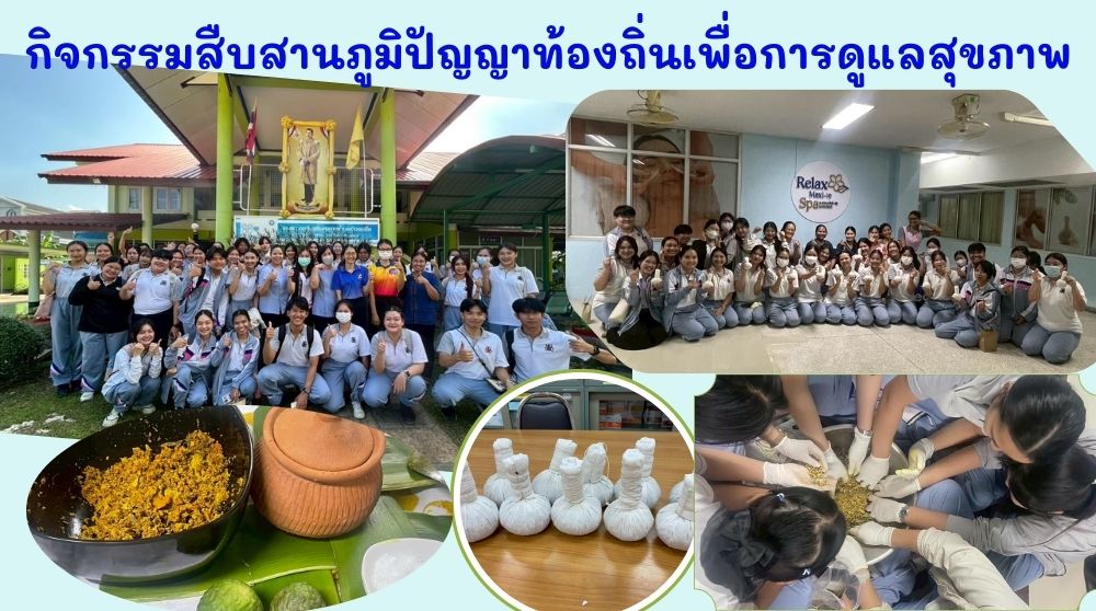 งานทำนุบำรุงศิลปวัฒนธรรม จัดกิจกรรมสืบสานภูมิปัญญาท้องถิ่นเพื่อการดูแลสุขภาพ บูรณาการกับรายวิชาในหลักสูตร