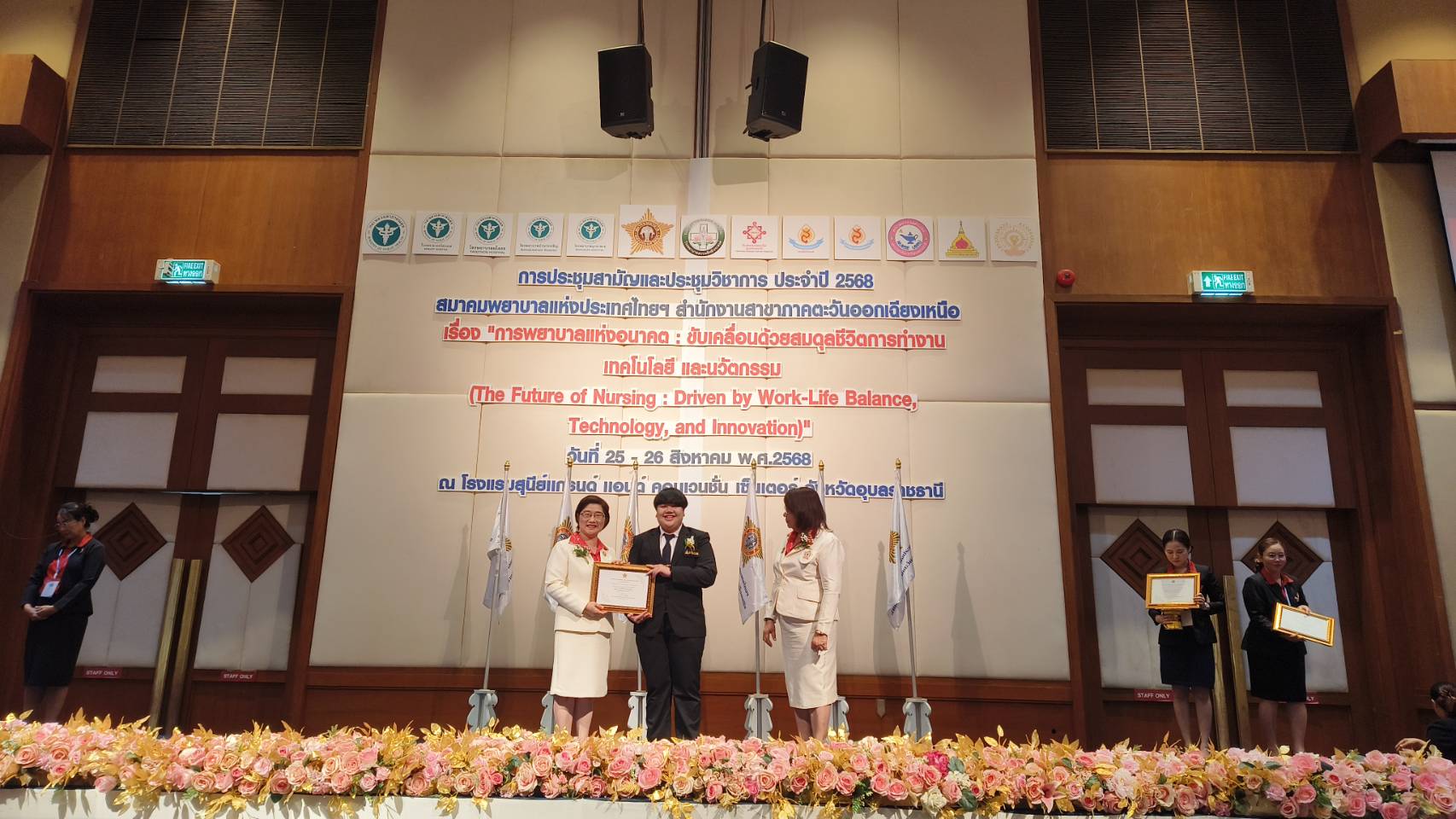คณะพยาบาลศาสตร์ ขอแสดงความยินดี กับนางสาวพิมพ์นิภา ลอยลม นักศึกษาคณะพยาบาลศาสตร์ เนื่องในโอกาสได้รับรางวัล “นักศึกษาพยาบาลดีเด่น” จากสมาคมพยาบาลแห่งประเทศไทยฯ สำนักงานสาขาภาคตะวันออกเฉียงเหนือประจำปี 2568