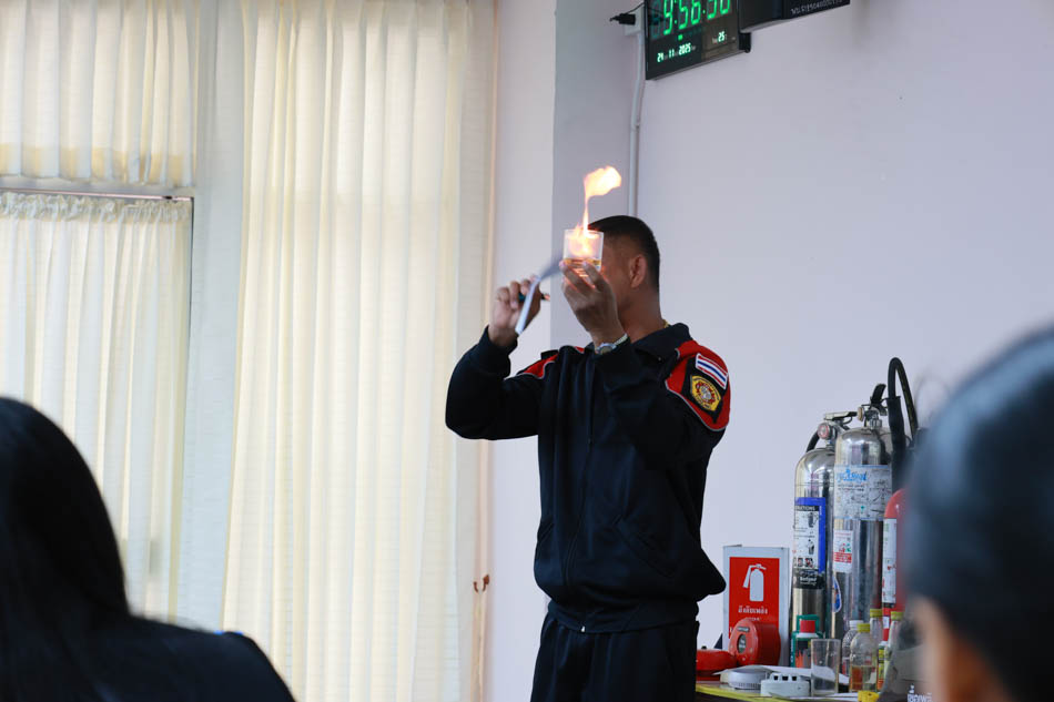 ในการอบรมครั้งนี้ คณะพยาบาลศาสตร์ ได้รับความอนุเคราะห์จาก ห้างหุ้นส่วนจำกัด แจ๊คไฟร์เรซคิว เทรนนิ่ง เซอร์วิส (ศูนย์ฝึกอบรมดับเพลิงและกู้ภัย) เป็นวิทยากรให้ความรู้เกี่ยวกับอัคคีภัยตั้งแต่หลักการเกิดไฟ ประเภทของไฟและเครื่องดับเพลิง การป้องกันอัคคีภัย การแจ้งเหตุฉุกเฉิน การอพยพหนีไฟ ตลอดจนการวางแผนดับเพลิง การค้นหาและช่วยเหลือผู้ประสบภัย