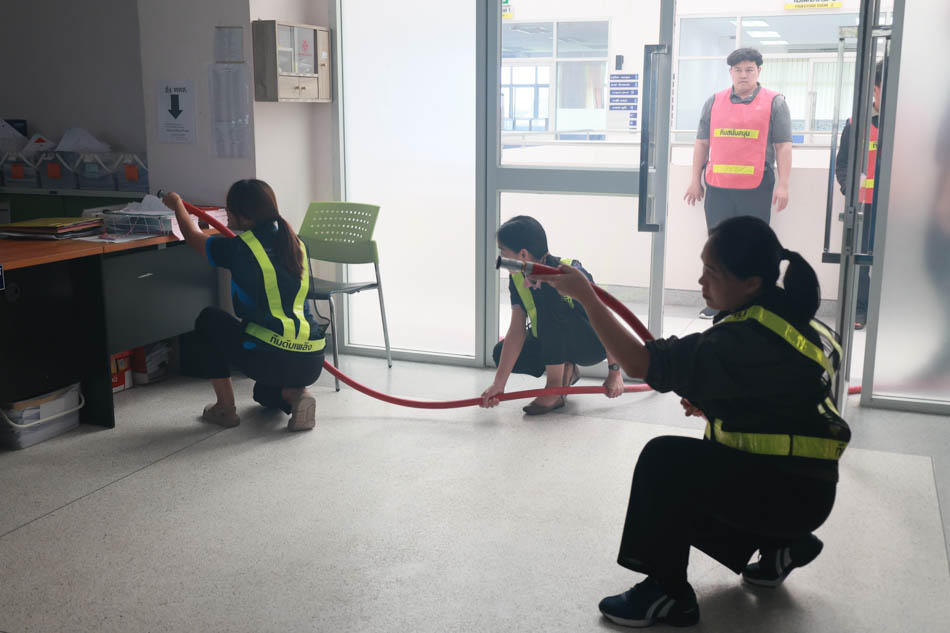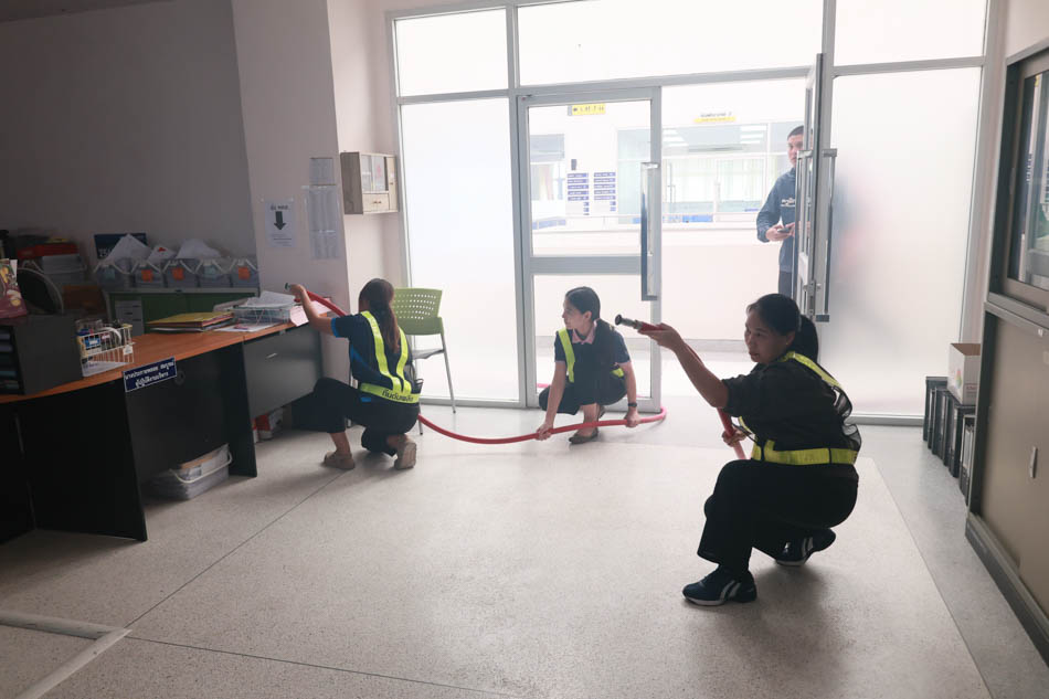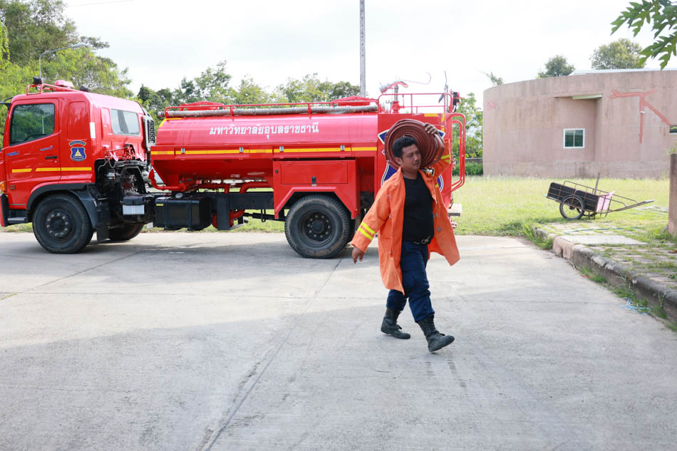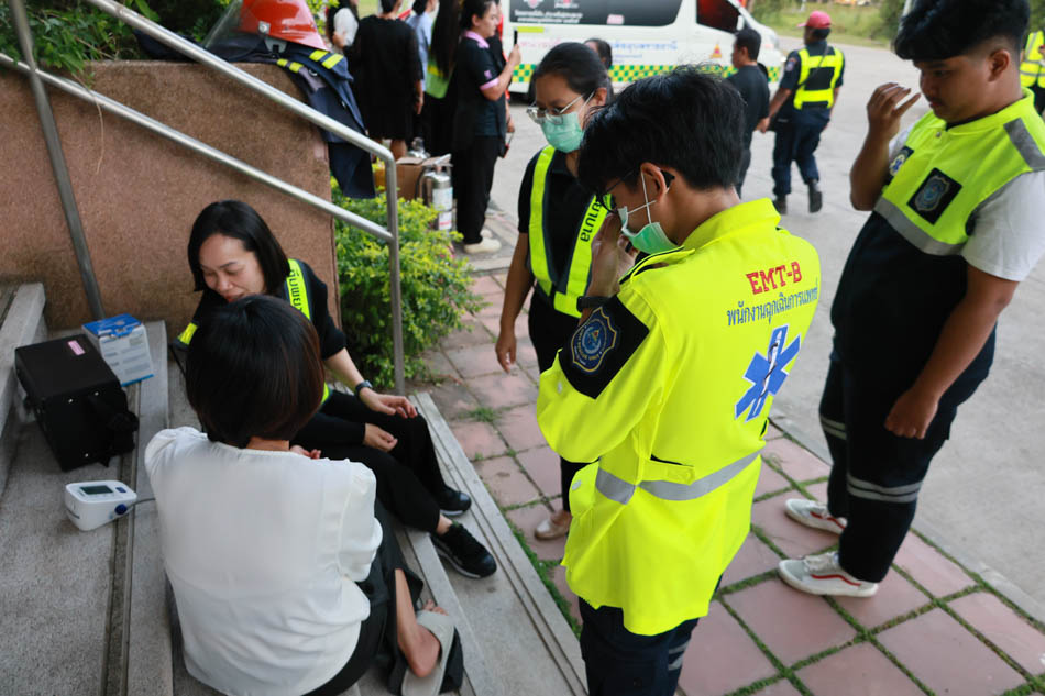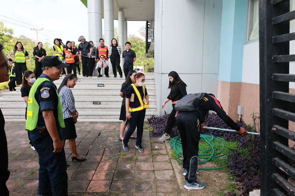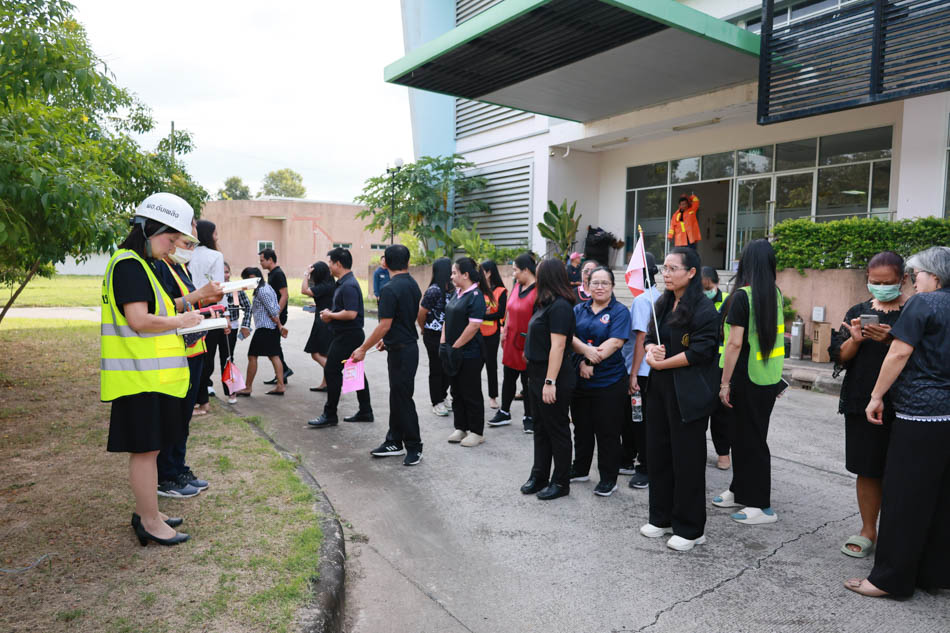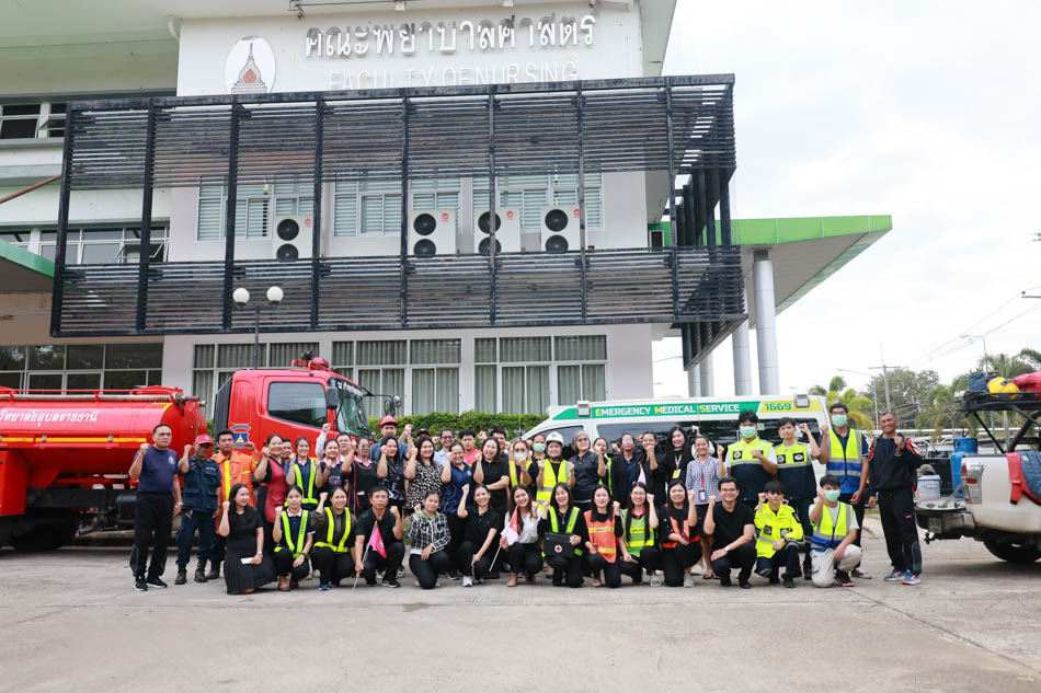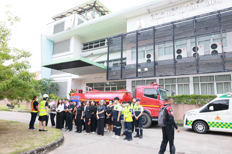 ผู้ช่วยศาสตราจารย์ ดร.สมลักษณ์ เทพสุริยานนท์ คณบดีคณะพยาบาลศาสตร์ พร้อมด้วย ผู้บริหาร อาจารย์ บุคลากร ได้ร่วมกันฝึกซ้อมปฏิบัติจริง ทั้งการดับเพลิงขั้นต้น และการอพยพหนีไฟ โดยจำลองสถานการณ์เสมือนจริง เพื่อให้บุคลากรได้เรียนรู้ขั้นตอนปฏิบัติที่ถูกต้อง พร้อมทั้งได้รับการสนับสนุนจาก งานรักษาความปลอดภัย มหาวิทยาลัยอุบลราชธานี ที่ได้นำรถดับเพลิง รถกู้ชีพ และเจ้าหน้าที่ผู้เชี่ยวชาญเข้าร่วมการซักซ้อมในครั้งนี้ ช่วยให้การฝึกซ้อมมีความสมบูรณ์และสมจริงมากยิ่งขึ้น