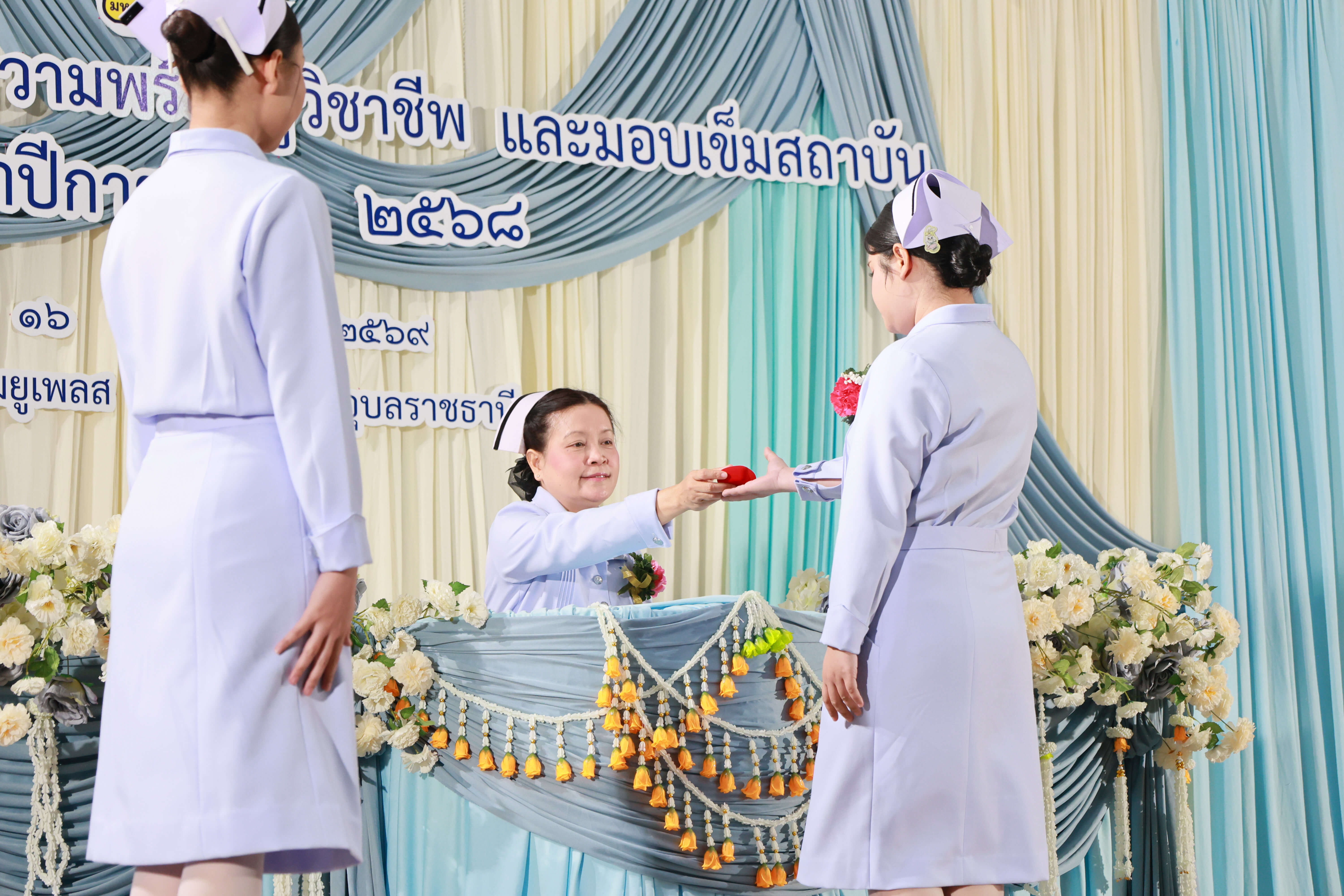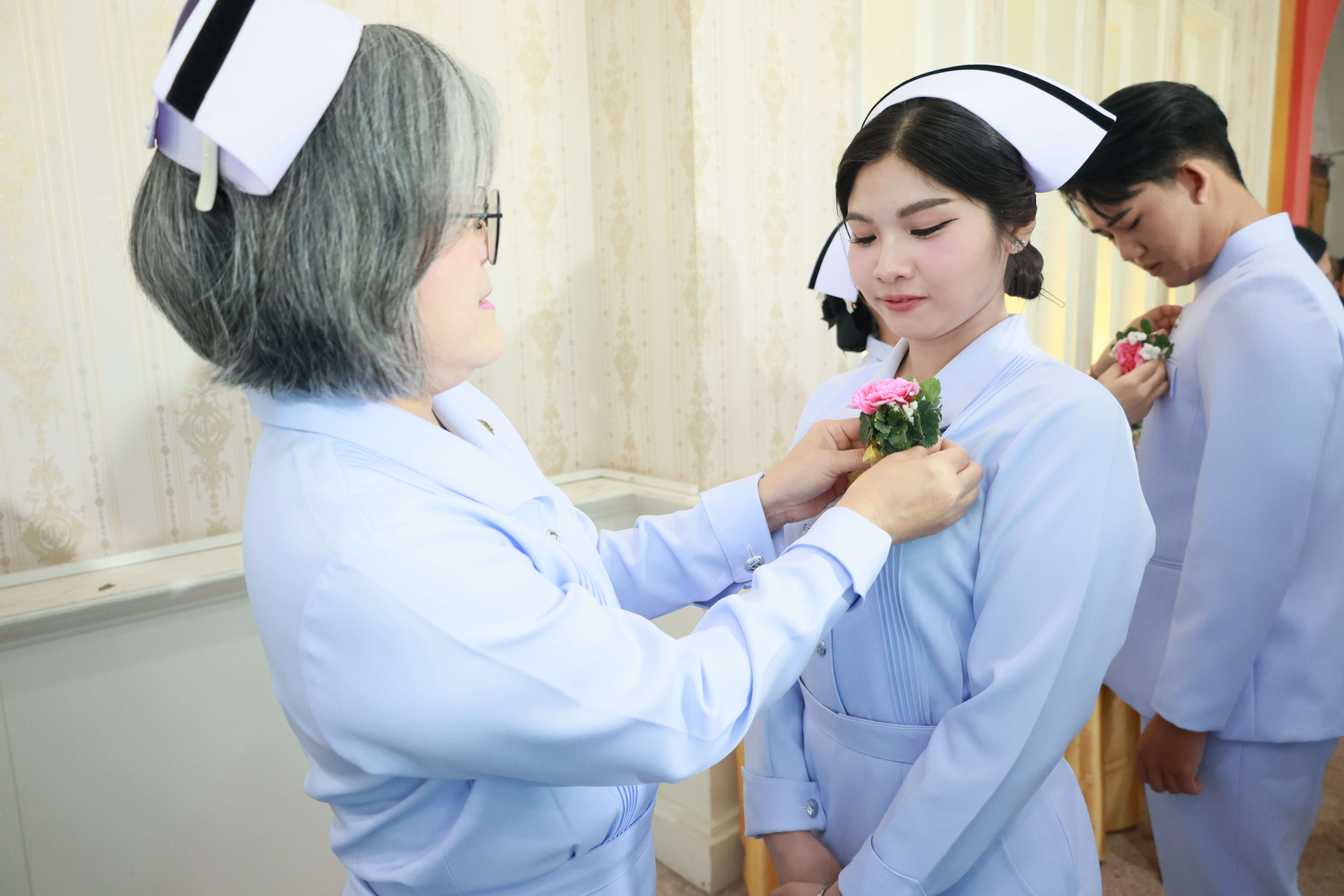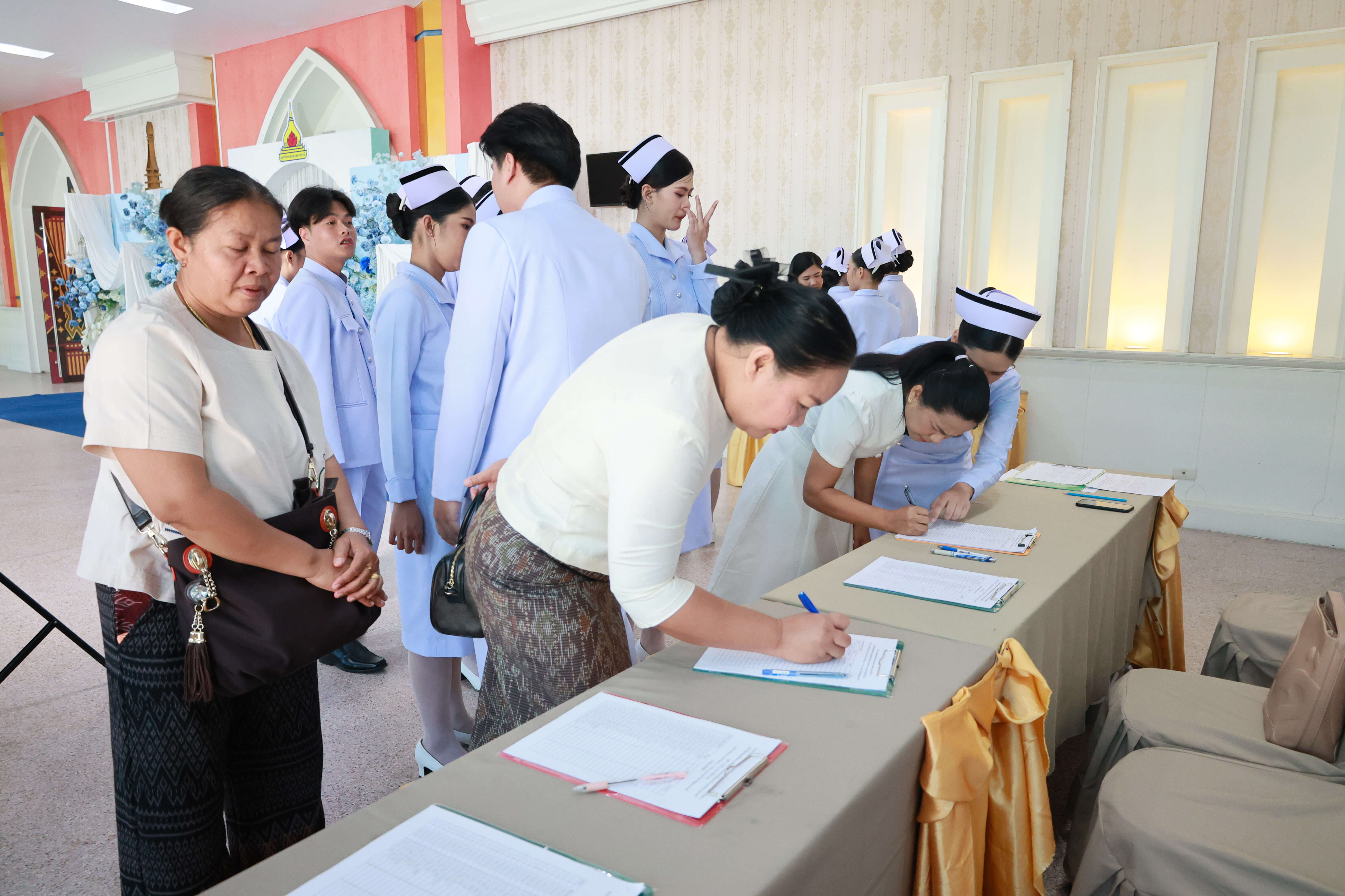 ทั้งนี้ ในปีการศึกษา 2568 มีนักศึกษาที่สำเร็จการศึกษาหลักสูตรพยาบาลศาสตรบัณฑิต รุ่นที่ 13 จำนวนทั้งสิ้น 97 คน โดยพิธีปัจฉิมนิเทศและการมอบเข็มสถาบันนับเป็นกิจกรรมสำคัญที่ช่วยเสริมสร้างความภาคภูมิใจ ความมั่นใจ และเป็นแรงบันดาลใจให้ผู้สำเร็จการศึกษาได้นำความรู้และทักษะที่ได้รับไปใช้ในการปฏิบัติงานอย่างมีจริยธรรมและมาตรฐานวิชาชีพ เพื่อประโยชน์ต่อสังคมและระบบสาธารณสุขของประเทศต่อไป
