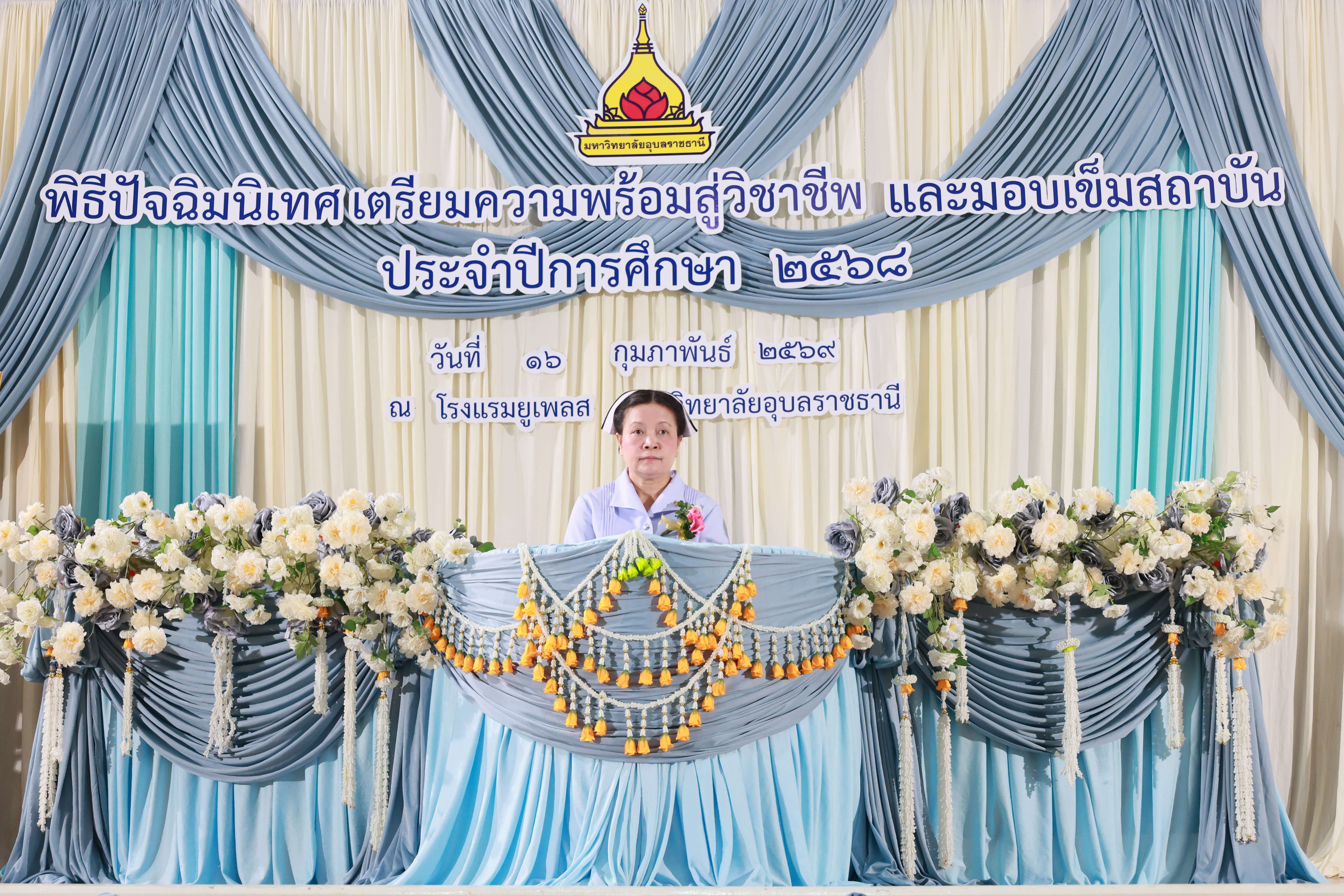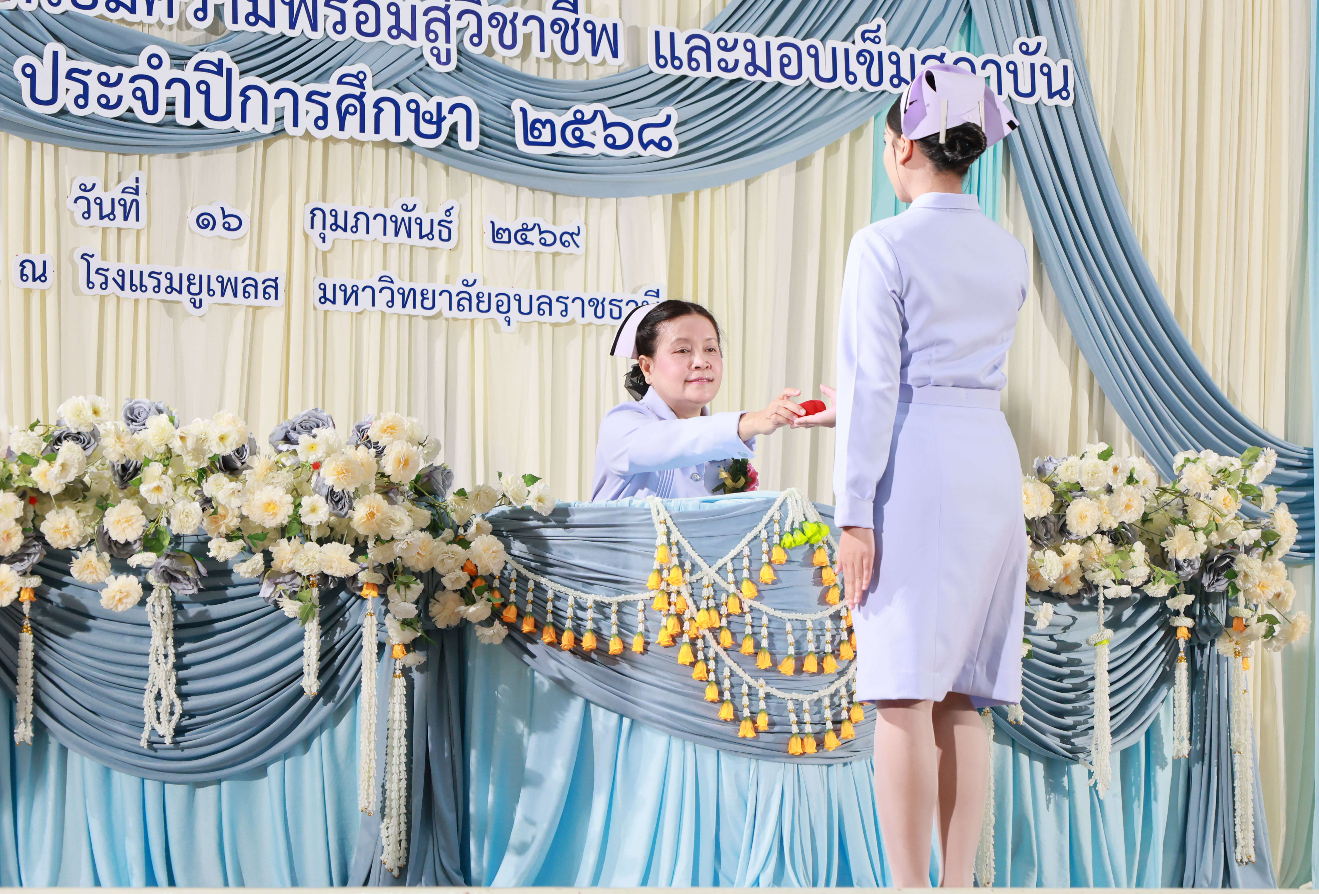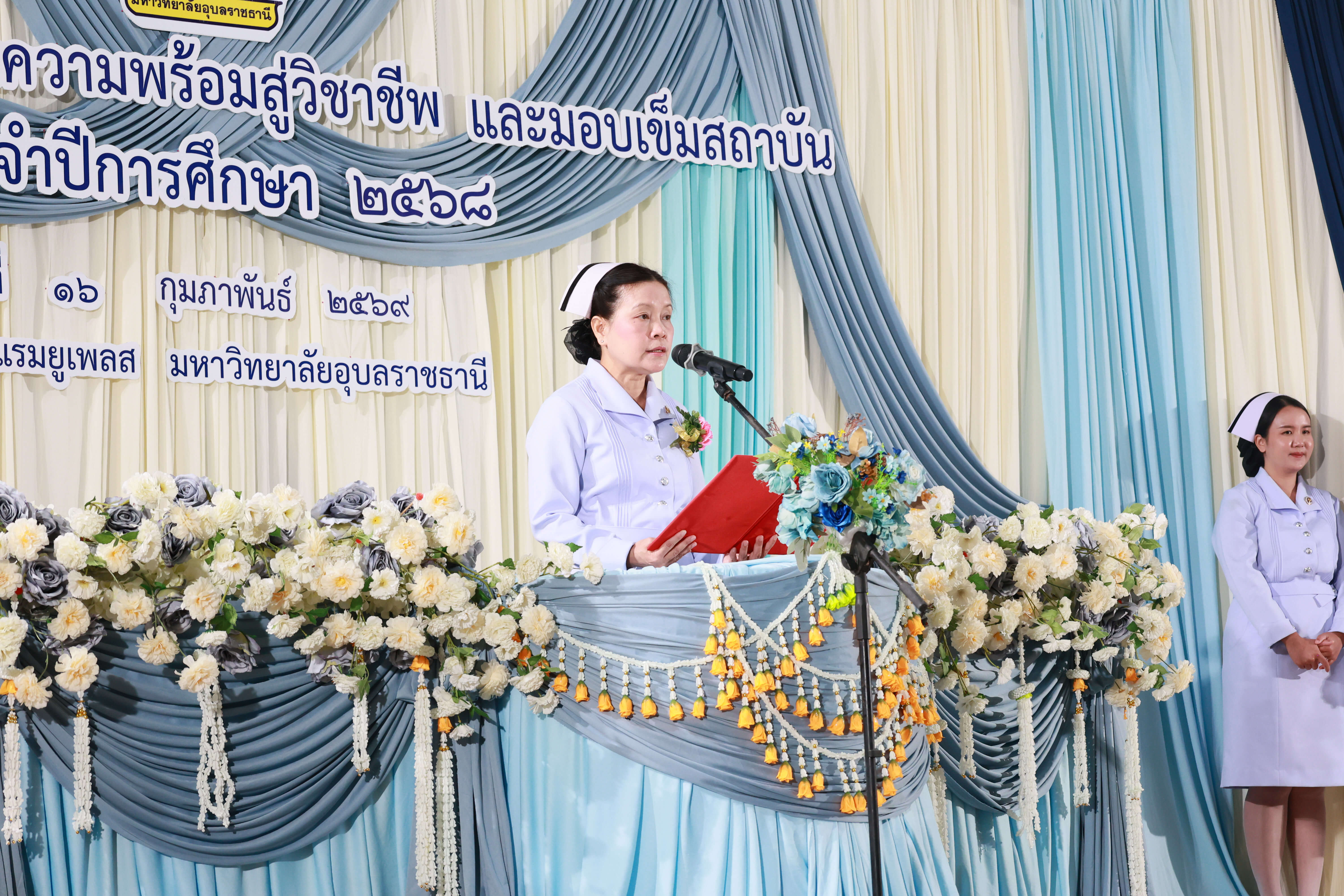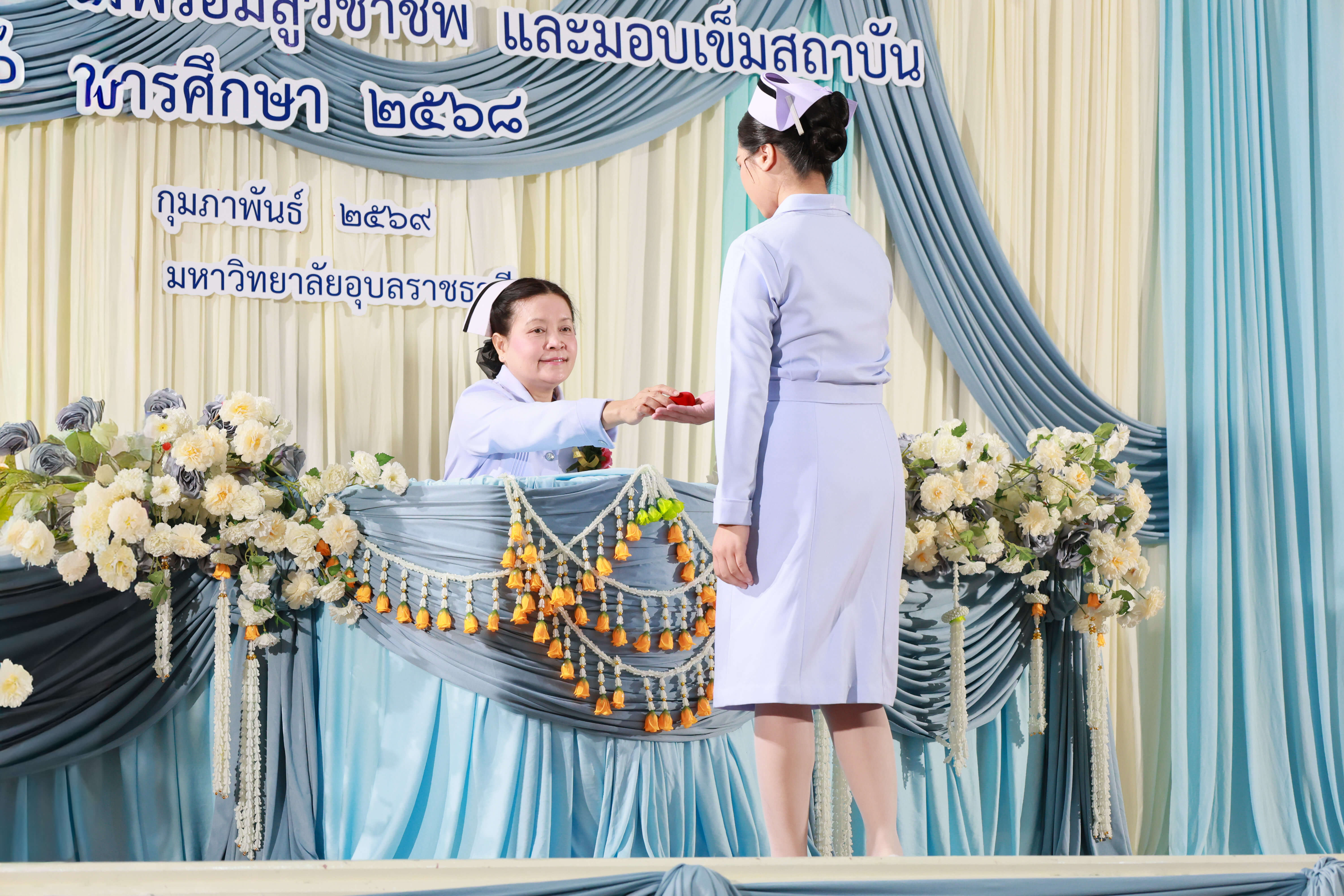 คณะพยาบาลศาสตร์ มหาวิทยาลัยอุบลราชธานี จัดโครงการปัจฉิมนิเทศและพิธีมอบเข็มสถาบันให้แก่นักศึกษาที่สำเร็จการศึกษาหลักสูตรพยาบาลศาสตรบัณฑิต รุ่นที่ 13 ประจำปีการศึกษา 2568 เมื่อวันที่ 16 กุมภาพันธ์ 2569 เพื่อเตรียมความพร้อมในการก้าวสู่การประกอบวิชาชีพพยาบาลอย่างมีคุณภาพและเป็นสัญลักษณ์แห่งความภาคภูมิใจของผู้สำเร็จการศึกษา