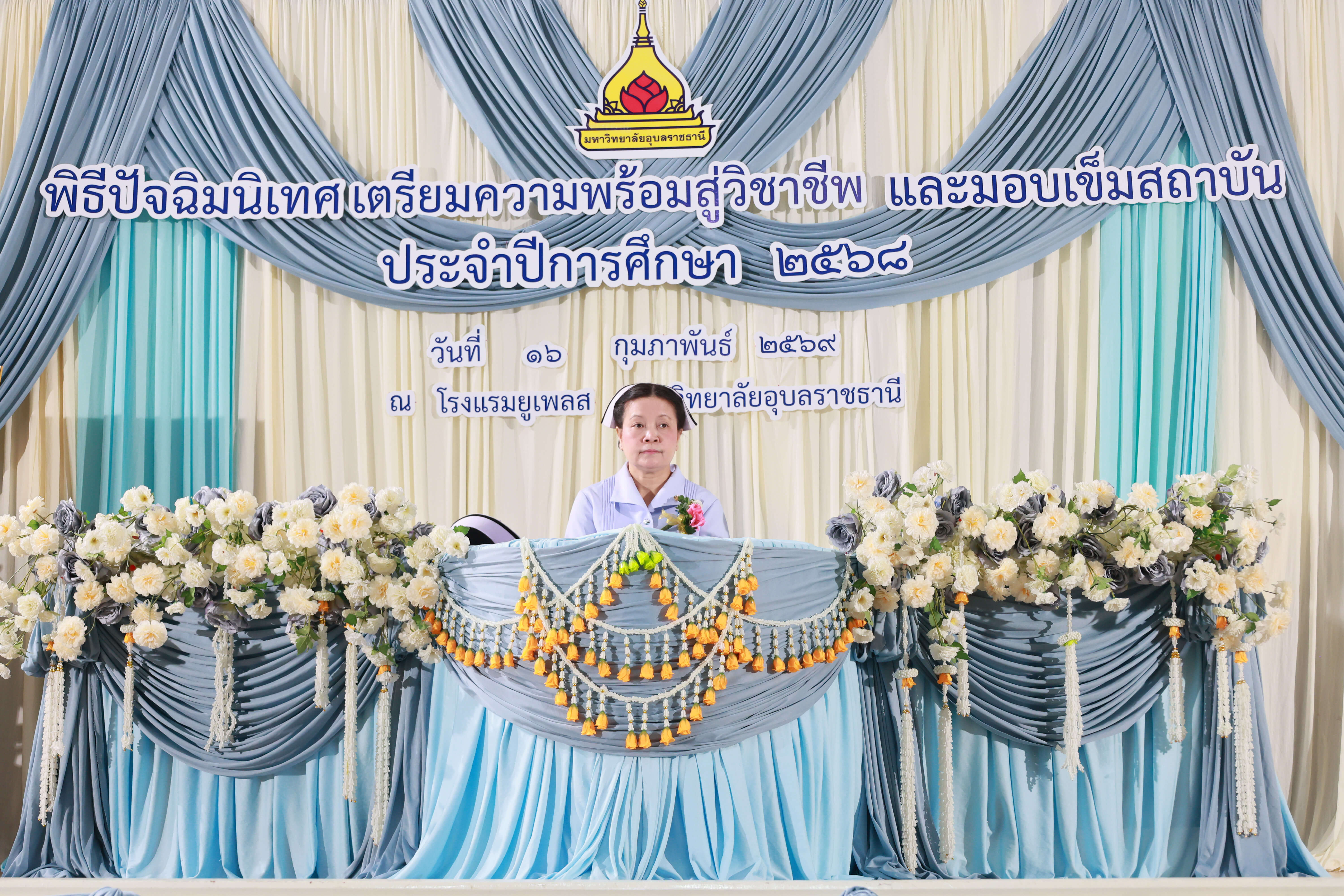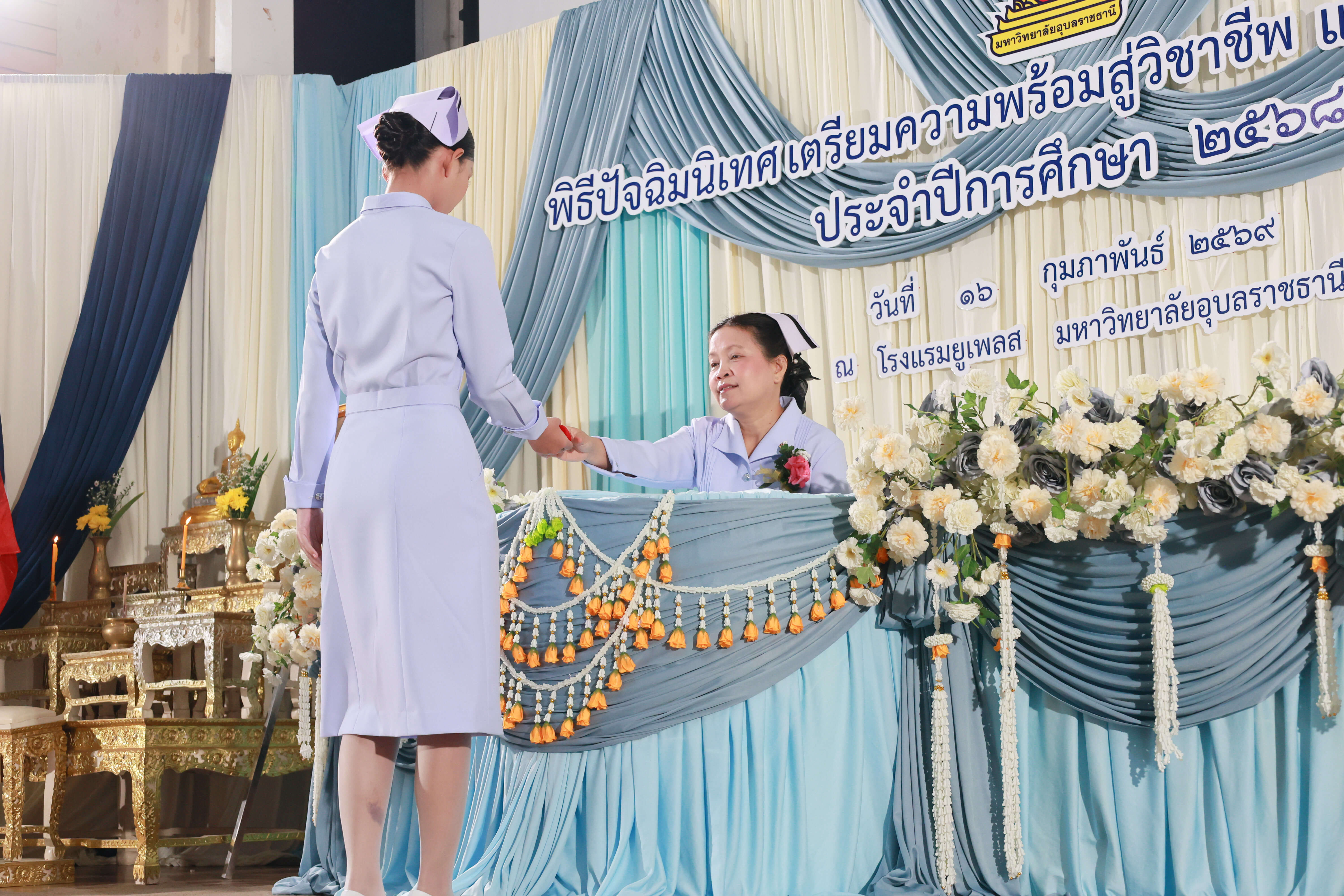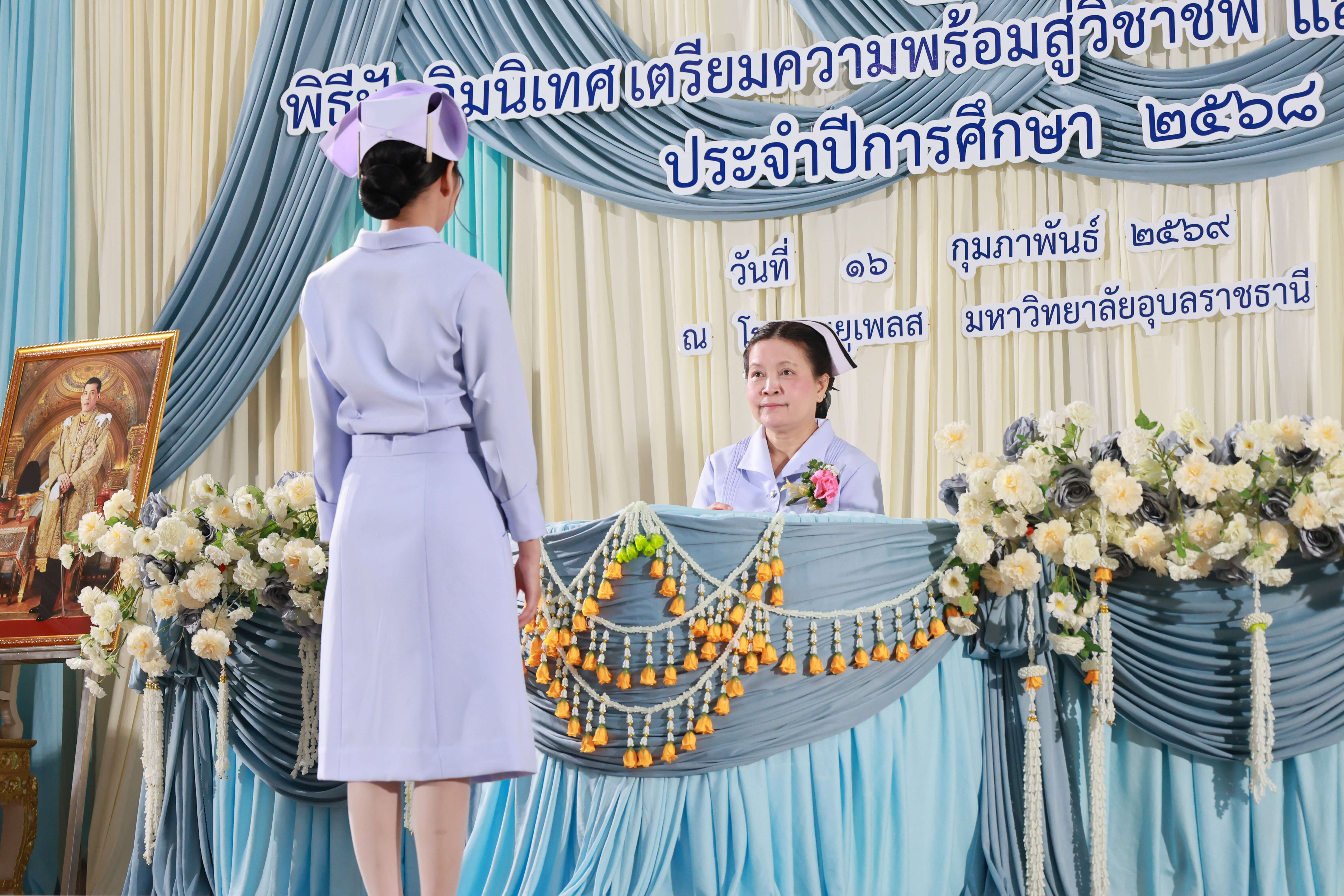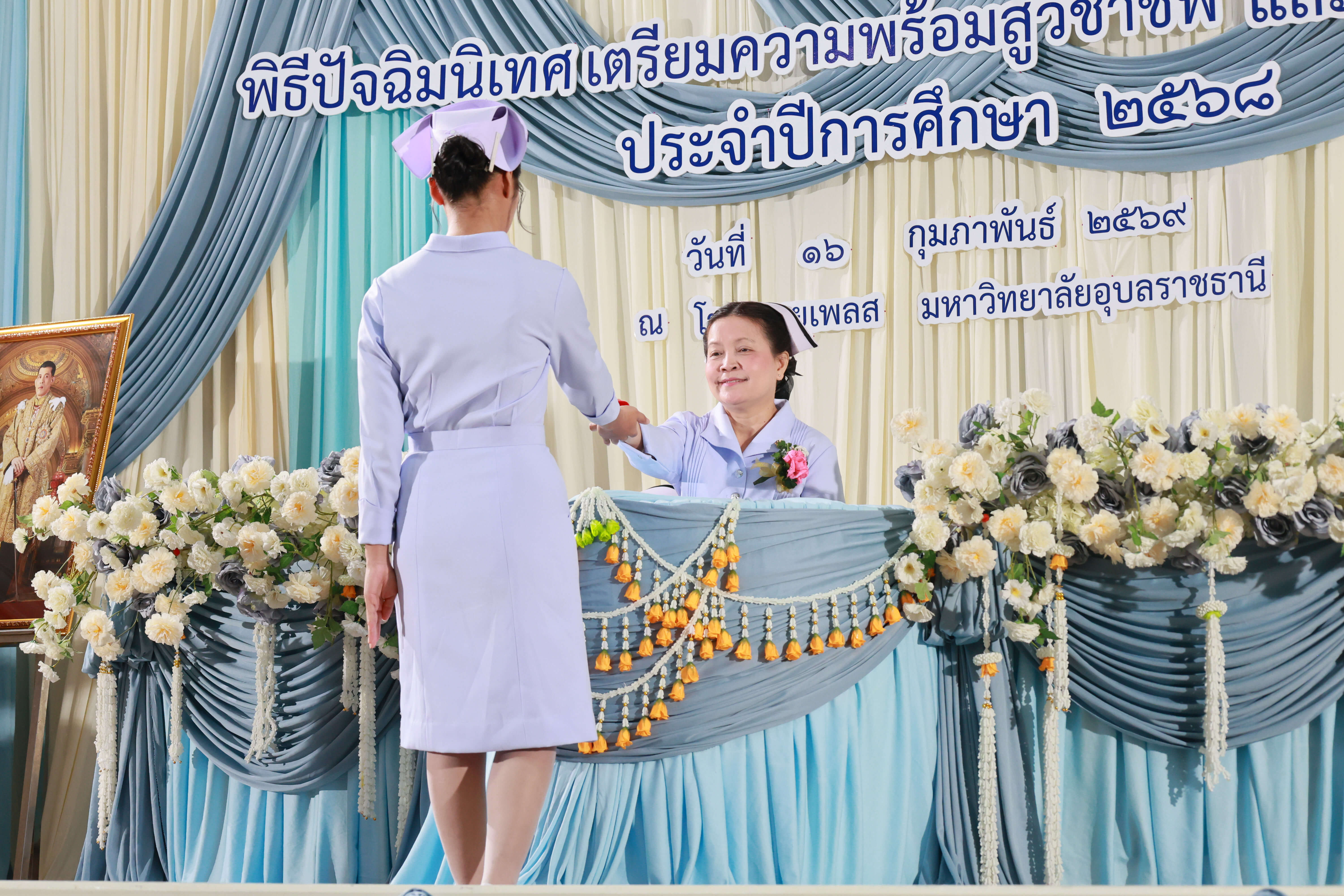 คณะพยาบาลศาสตร์ มหาวิทยาลัยอุบลราชธานี จัดโครงการปัจฉิมนิเทศและพิธีมอบเข็มสถาบันให้แก่นักศึกษาที่สำเร็จการศึกษาหลักสูตรพยาบาลศาสตรบัณฑิต รุ่นที่ 13 ประจำปีการศึกษา 2568 เมื่อวันที่ 16 กุมภาพันธ์ 2569 เพื่อเตรียมความพร้อมในการก้าวสู่การประกอบวิชาชีพพยาบาลอย่างมีคุณภาพและเป็นสัญลักษณ์แห่งความภาคภูมิใจของผู้สำเร็จการศึกษา